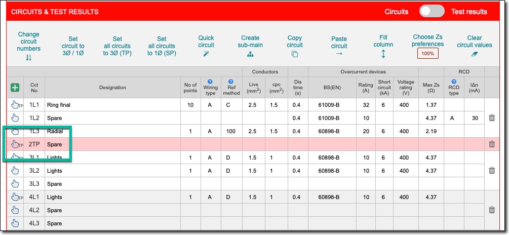 Once a board has been defined as three-phase, you can make circuits triple-pole or TP.